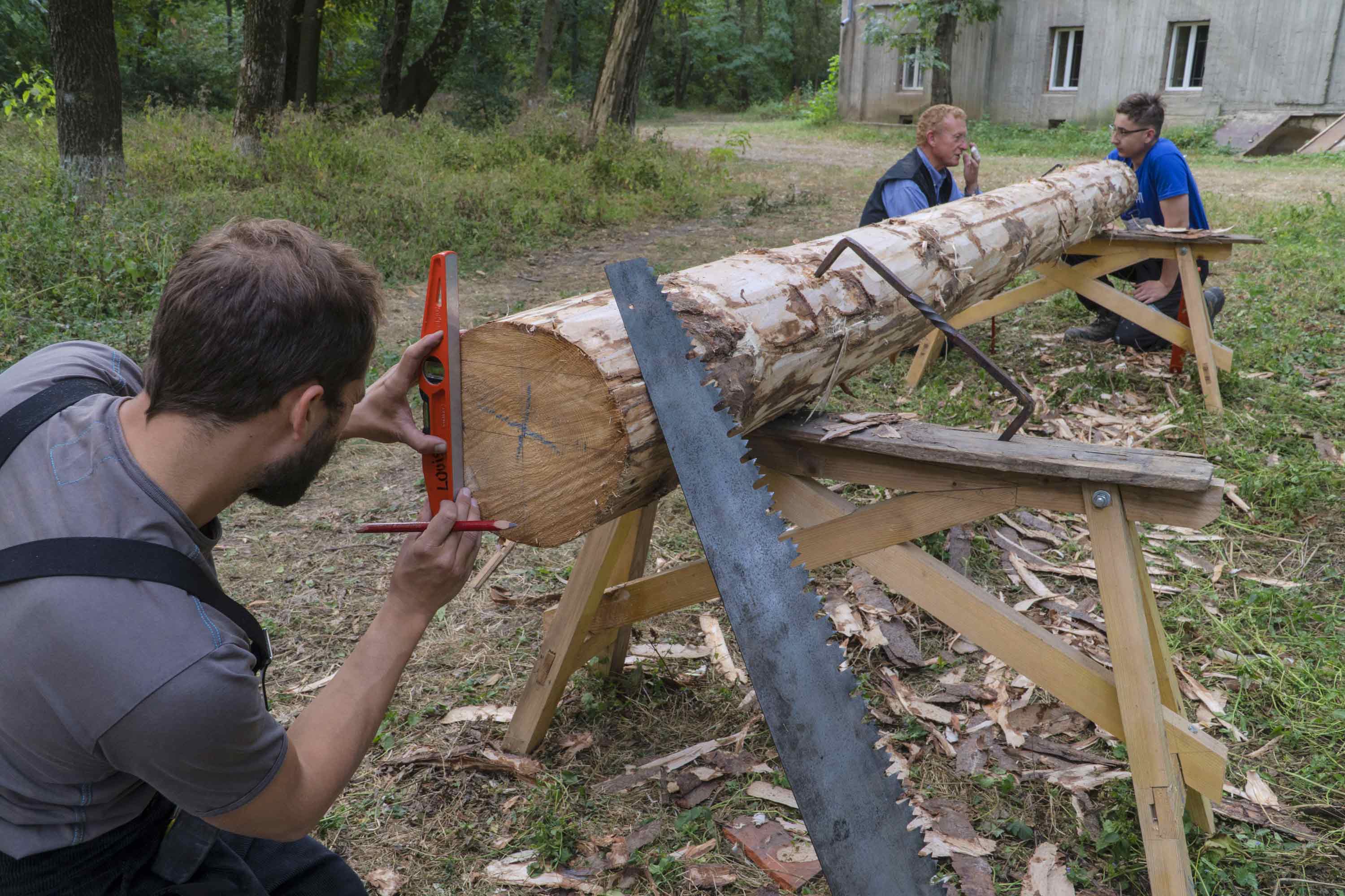 En 1992 peu après la chute du mur de Berlin, des contacts culturels commencent à se mettre en place entre la Roumanie et l’Europe occidentale. Ainsi un premier chantier international autour du bois de construction se met en place avec le musée du bois de Cîmpulung Moldovenesc. Une équipe de charpentiers français, allemands, britanniques vient à la rencontre de charpentiers de Bucovine, spécialistes villageois de la construction traditionnelle. À cette époque aucun charpentier français ne pratique plus l’équarrissage à la hache. L’efficacité et la beauté du geste des charpentiers-paysans des Carpates séduisent durablement les spécialistes français qui, après une nécessaire période d’incubation, reprennent en considération les pratiques pré-industrielles. On peut estimer que l’engouement actuel en France pour les techniques manuelles de façonnage des bois à l’outil à main remontent, en bonne partie, à ce premier chantier en commun et au livre Charpentiers au travail publié peu après (François Calame, et al. 1993, Editions A Die).