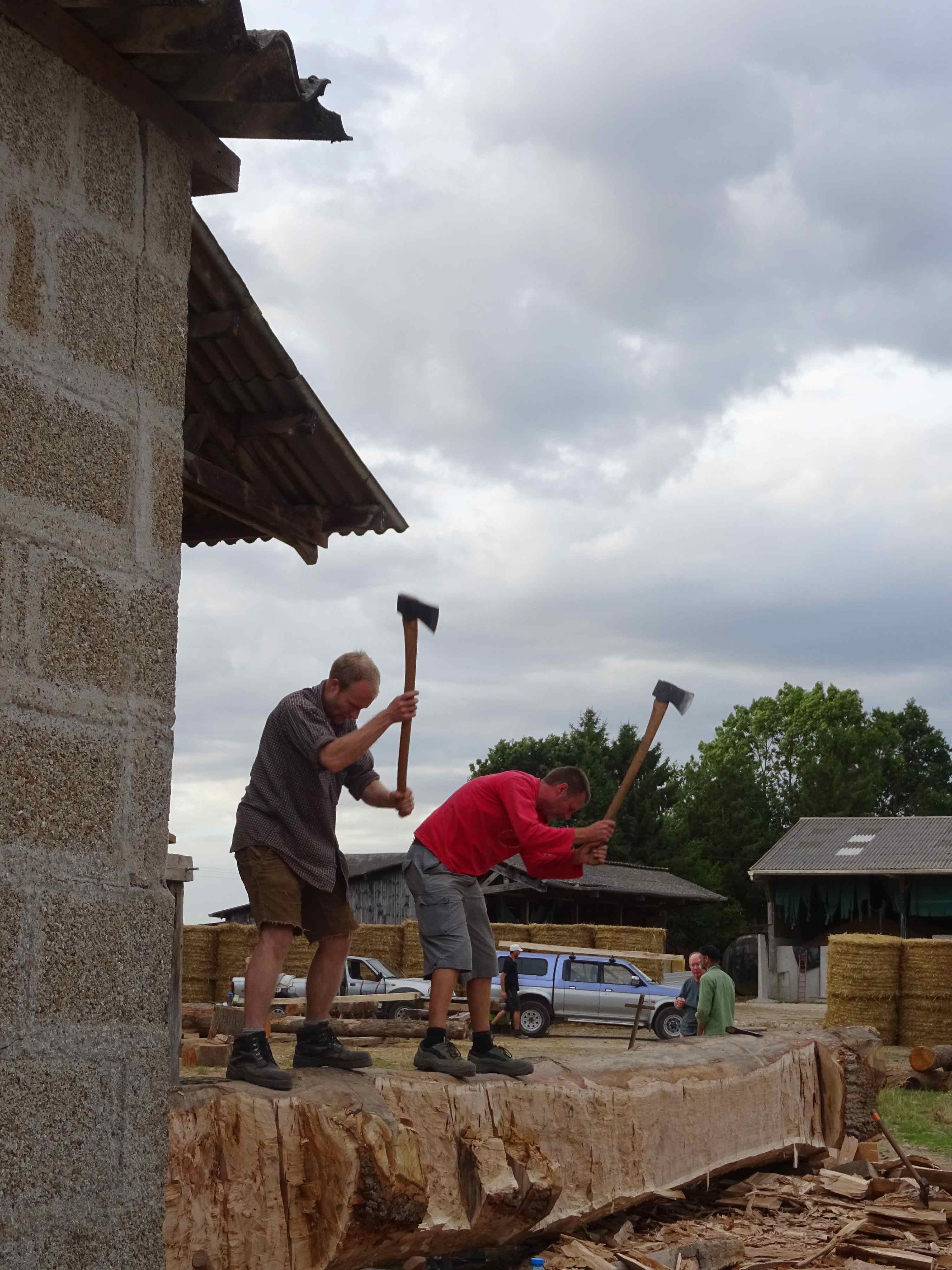 This was our first axe and all-hand-tools workshop gathering in Normandy. The site is a sixteenth century fortified farm and a listed historic monument. Our team of volunteer carpenters came from Britain, Poland, Lithuania, Turkey, Sweden, France and the Maramureș region of Romania.