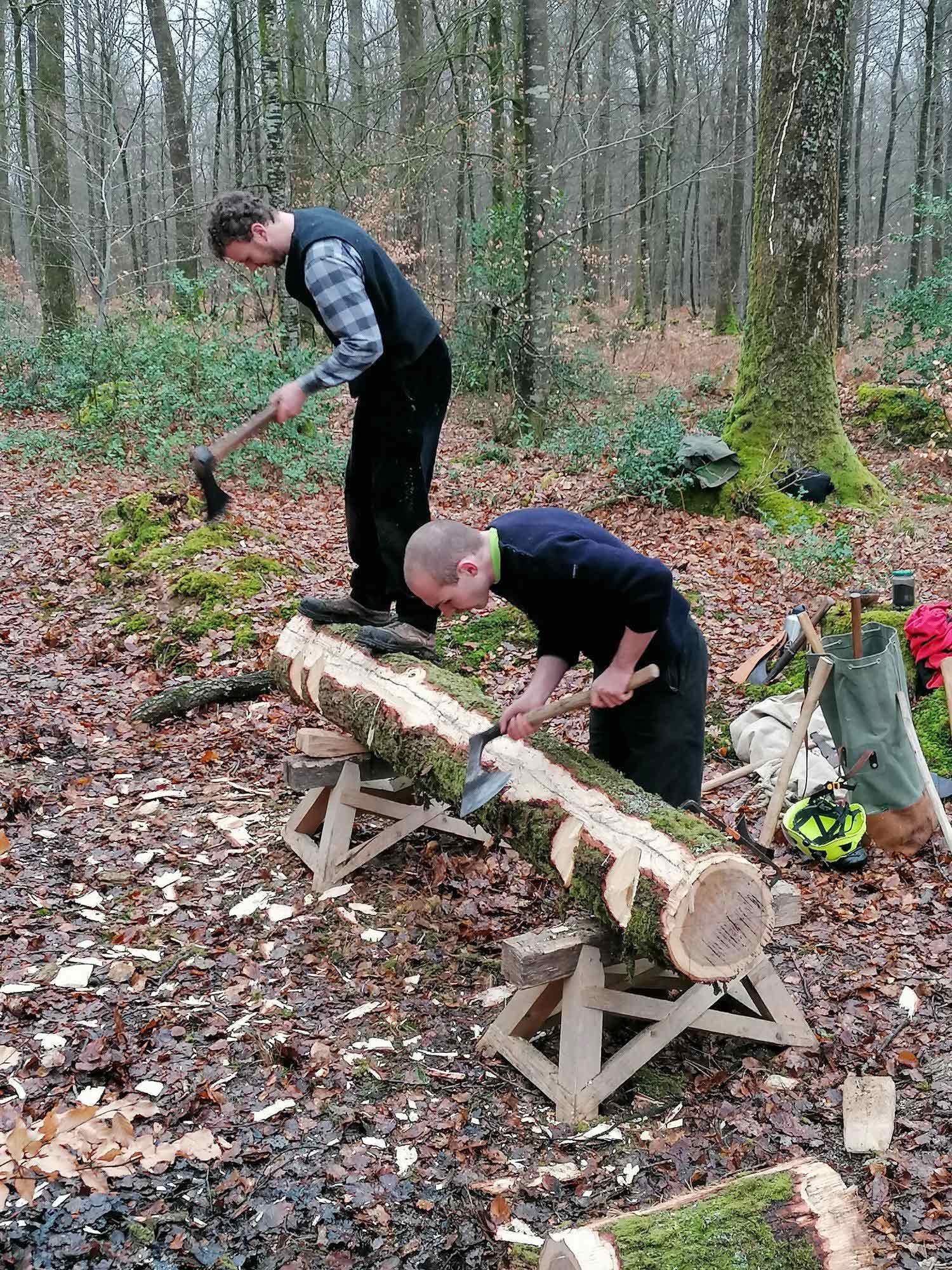 ➞Levage manuel à l'aide de palans mouflés, Mesnil-Geoffroy, France➞Manual lifting with pulley hoists, Mesnil-Geoffroy, France[07/2020]➞Perçage d'une mortaise à la tarière, Mesnil-Geoffroy, France➞Drilling a mortise with an auger, Mesnil-Geoffroy, France[07/2020]➞Forgeage d'une hache à douille par Simon Luquet, Munster, France➞Forging of a socket axe by Simon Luquet, Munster, France[07/2020]➞Taille d'un tenon à la hache par Gustave Remon, Mesnil-Geoffroy, France➞Cutting a tenon with an axe by Gustave Remon, Mesnil-Geoffroy, France[07/2020]➞Levage de la ferme à Notre-Dame, accrochage du bouquet final, Paris, France➞Lifting of the truss at Notre-Dame, hanging of the final bouquet, Paris, France[09/2020]➞About de blochet en bois de chêne de brin, Mesnil-Geoffroy, France➞(traduction will be there soon…), Mesnil-Geoffroy, France[07/2020]➞Sur le parvis de Notre-Dame, Alexandra Bourgès et Florian Carpentier, Paris, France➞On the square in front of Notre-Dame, Alexandra Bourgès and Florian Carpentier, Paris, France[09/2020]➞Levage manuel de la ferme N07, Charles Barbero met en place les suspentes, Mesnil-Geoffroy, France➞Manual lifting of the truss N07, Charles Barbero sets up the lines, Mesnil-Geoffroy, France[07/2020]➞L'équipe au travail, ferme N07, Mesnil-Geoffroy, France➞Team at work, truss N07, Mesnil-Geoffroy, France[07/2020]➞Taille d’une mortaise de chevron à l’aide d’un gabarit d’épaisseur, Mesnil-Geoffroy, France➞Cutting a rafter mortise using a thickness template, Mesnil-Geoffroy, France[07/2020]➞Répétition pour le ferme N07 avant levage, modèle par Florian Carpentier, Mesnil-Geoffroy, France➞Rehearsal for truss N07 before lifting, model by Florian Carpentier, Mesnil-Geoffroy, France[07/2020]➞Piquage au plomb par Sophie Wintzer, Mesnil-Geoffroy, France➞Lead stitching by Sophie Wintzer, Mesnil-Geoffroy, France[07/2020]➞Grume de frêne en cours d’équarrissage, Ţibăneşti, Roumanie➞A log being hewed, Ţibăneşti, Romania[09/2017]➞Sciage de long, Aclou, France➞Pitsawing in Aclou, France[09/2016]➞Le collectif réuni sur le chantier de Ţibăneşti, Roumanie➞The team gathered at the workshop in Ţibăneşti, Romania[09/2017]➞Charpente traditionnelle Chinoise en cours de levage sur le chantier du Guizhou, Chine➞Traditional Chinese frames being raised at the workshop in Guizhou, Chine[09/2015]➞Shan Mu, bois utilisé sur le chantier chinois➞Shan Mu, wood used for the workshop in China[09/2015]➞Andron Sauciuc équarrit à l’aide de la doloire "balta", Cîmpulung-Moldovenesc, Roumanie➞Andron Sauciuc hews with his single-bevel axe "balta", Cîmpulung-Moldovenesc, Romania[05/1992]➞Pierrot et Mohamed sur le chantier d’Harcourt, France➞Pierrot and Mohamed at the workshop in Harcourt, France[09/2018]➞Léonard équarrissant, Sedgwick, États-Unis➞Léonard hewing, Sedgwick, USA[09/2019]➞Taille d’une mortaise sur bois rond, Guizhou, Chine➞Carving a mortice, Guizhou, Chine[09/2015]➞Andron Sauciuc et Dragan Haralambie équarrissent à la hache à ébaucher, Cîmpulung-Moldovenesc, Roumanie➞Andron Sauciuc and Dragan Haralambie hew with their roughing axe "topor", Cîmpulung-Moldovenesc, Romania[05/1992]➞L’ampoule avant la corne, Ţibăneşti, Roumanie➞Blister before horn, Ţibăneşti, Romania[09/2017]➞Pierre de Villepoix sur le chantier de Ţibăneşti, Roumanie➞Pierre at the workshop in Ţibăneşti, Romania[09/2017]➞Montage d’une ferme, Ţibăneşti, Roumanie➞Raising the frame, Ţibăneşti, Romania[09/2017]➞Vue du dessous du pont dégradé, avant travaux, Harcourt, France➞Bottom view of the deteriorated bridge, before workshop, Harcourt, France[09/2018]➞Levage dans le donjon du château de Gaillon, France➞Raising in the dungeon of the castle of Gaillon, France[09/2014]➞Șerban Sturdza tapant la dernière cheville sur la charpente, Ţibăneşti, Roumanie➞Șerban Sturdza hitting the last peg, Ţibăneşti, Romania[09/2017]➞Le collectif réuni sur le chantier d’Harcourt, France➞The team gathered at the workshop in Harcourt, France[09/2018]➞Charpente levée, Sedgwick, États-Unis➞Raised building, Sedgwick, USA[09/2019]➞Château d’Harcourt, France➞The castle of Harcourt, France[09/2018]➞Découpe d’entailles au passe-partout, Harcourt, France➞Cutting of matting notches, Harcourt, France[09/2018]➞Léonard et Samuel, Sedgwick, États-Unis➞Léonard and Samuel, Sedgwick, USA[09/2019]➞Louis au marquage d’une grume, Ţibăneşti, Roumanie➞Louis marking the log, Ţibăneşti, Roumanie[09/2017]➞Will G. équarrissant, Harcourt, France➞Hewing, Harcourt, France[09/2018]➞Sophie taillant une mortaise, Ţibăneşti, Roumanie➞Sophie carving a mortice, Ţibăneşti, Romania[09/2018]➞Grume de chêne frais, Aclou, France➞Fresh oak log, Aclou, France[09/2018]➞Mike et Joe à l’équarrissage, Aclou, France➞Mike and Joe hewing, Aclou, France[09/2018]➞Équarrissage, Ţibăneşti, Roumanie➞Hewing, Ţibăneşti, Romania[09/2018]➞En déplaçant une grume..., Ţibăneşti, Roumanie➞Moving a log..., Ţibăneşti, Roumanie[09/2017]➞Gustave et Loïc équarissant en forêt de Senonches, France➞Gustave and Loïc hewing in the forest of Senonches, France[01/2020]➞Mohamed, Rennais et Picard, Finition à la doloire, Harcourt, France➞Finishing with a doloire, Harcourt, France[09/2018]➞L’heure de la sieste, Sedgwick, États-Unis➞Nap time, Sedgwick, USA[09/2019]➞Léo, ébauche d’une mortaise à la tarrière, Ţibăneşti, Roumanie➞Léonard digging a mortice with an auger, Ţibăneşti, Romania[09/2017]➞Will L. équarrissant à la doloire, Harcourt, France➞Hewing with a dôloire, Harcourt, France[09/2018]➞Équarrissage à la Breitbeil, Harcourt, France➞Hewing with a Breitbeil, Harcourt, France[09/2018]➞Mihai Miclos, Cîmpulung-Moldovenesc, Roumanie➞Mihai Miclos, Cîmpulung-Moldovenesc, Romania[05/1992]➞Sig